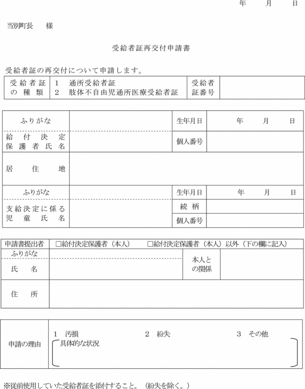 (受給者証の再交付申請)