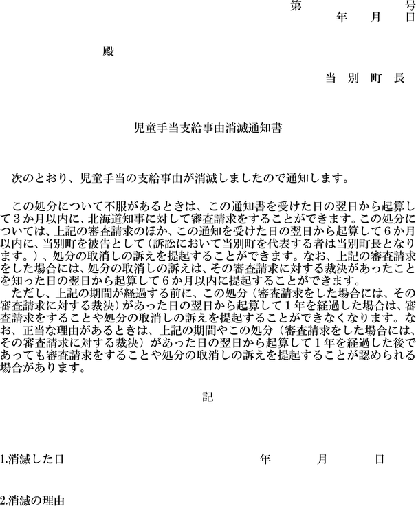第5条 町長は、一般受給者から施行規則第7条第1項の児童手当受給事由消滅届の提出を受けたときは、児童手当受給事由消滅通知書(