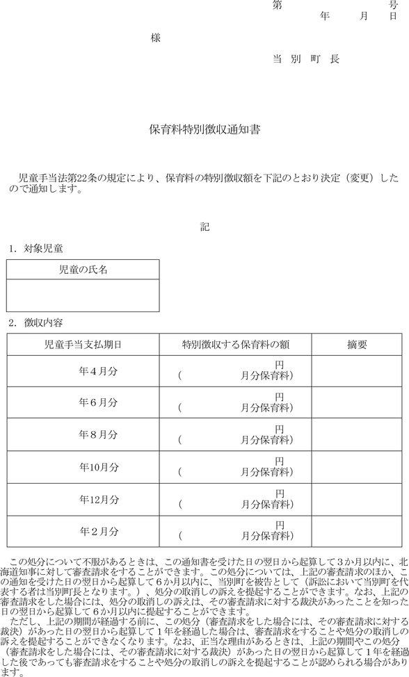 別記様式第16号。以下「徴収等変更等申出書」という。)により、徴収等がされる前に行うものとし、徴収等変更等申出書の提出された日以後に支払われるべき児童手当等を対象とする。
