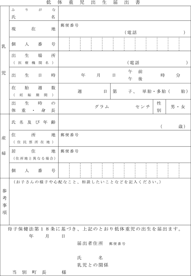 第4条 法第18条の規定による届出は、低体重児出生届出書(