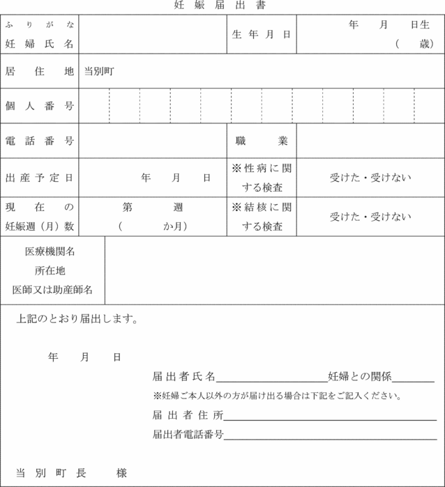 第2条 法第15条の規定による届出は、妊娠届出書(