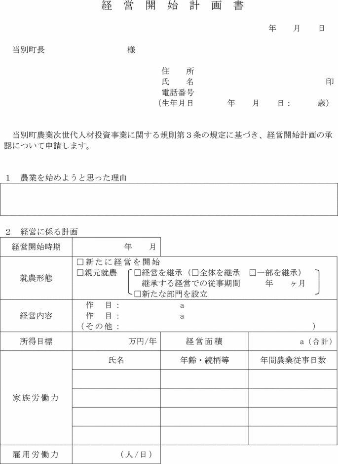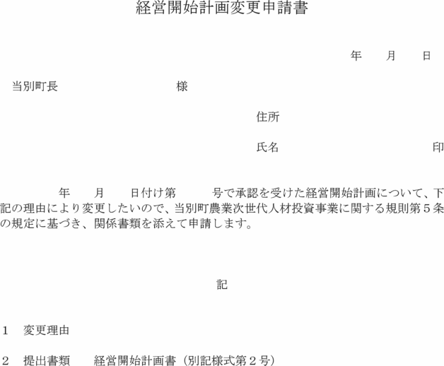 別記様式第4号)及び変更後の経営開始計画書を町長に提出しなければならない。