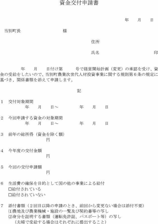 第6条 経営開始計画の承認を受けた資金の交付の申請者(前条に規定する経営開始計画の変更を含む。以下「交付申請者」という。)は、計画承認後に資金交付申請書(