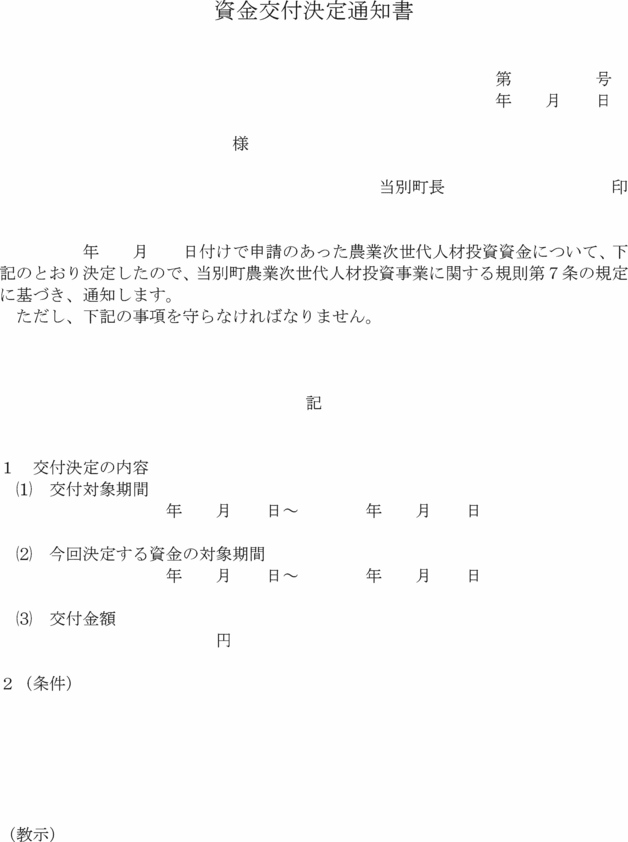 2 町長は、前項に規定する交付決定をしたときは、その内容を当該交付申請者に対し、資金交付決定通知書(