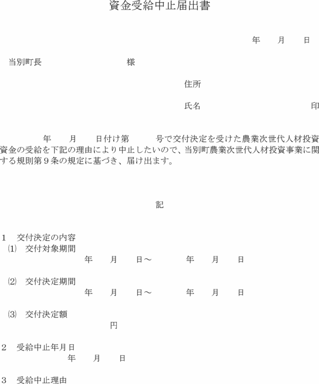第9条 受給者は、資金の受給を中止するときは、資金受給中止届出書(