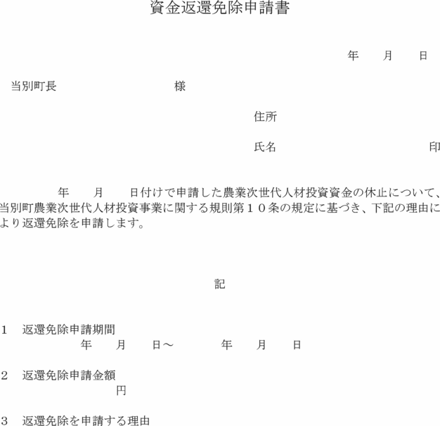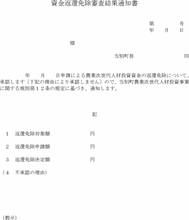 別記様式第12号)及び資金返還免除審査結果通知書(