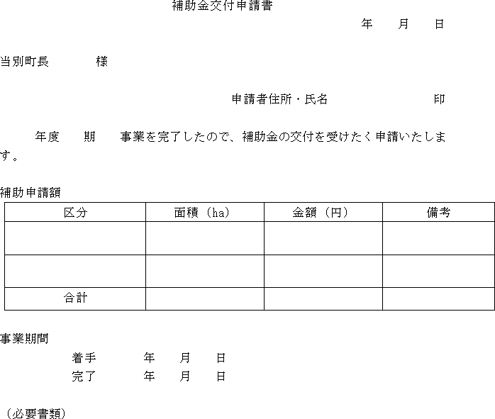別記様式第1号)に必要書類を添付し町長に提出するものとする。