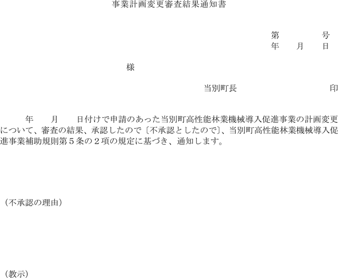 2 町長は、前項の規定による申請があったときは、その内容を審査し事業計画変更審査結果通知書(