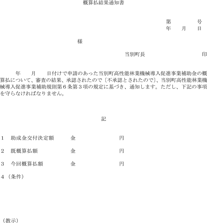 3 町長は、前項に規定する補助金の概算払いの申請があったときは、その内容を審査し、補助金概算払結果通知書(