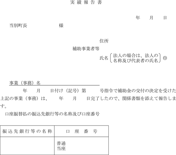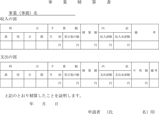 第8条 交付決定者は、事業が完了したときは、速やかに次の各号に定める書類に必要書類を添付して提出するものとする。