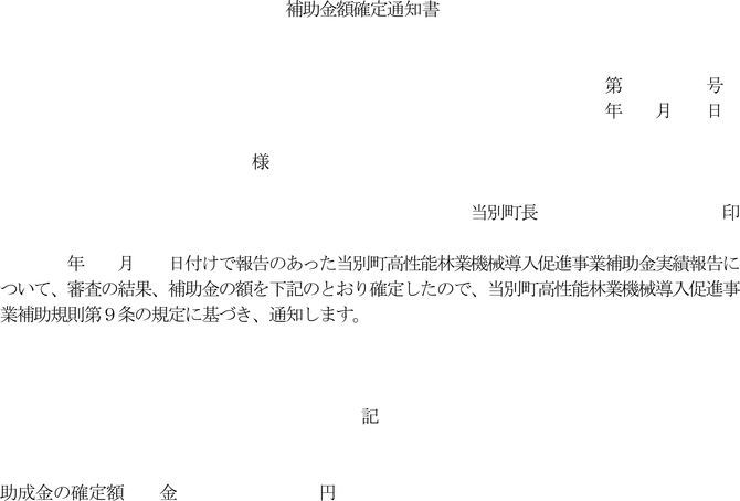 第9条 町長は、前条に規定する実績報告書の提出を受けた場合は、内容を審査し、適当と認めたときは、補助金の額を確定し、検査調書(