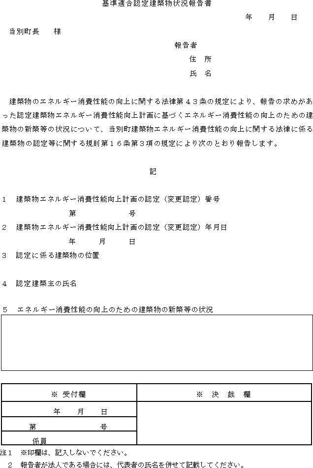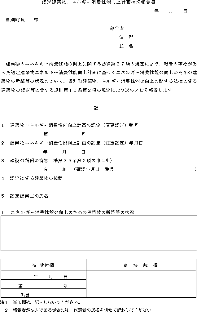 2 法第37条により町長から報告を求められた認定建築主は、認定建築物エネルギー消費性能向上計画状況報告書(