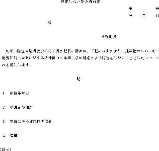2 町長は、第7条第2項の申請に係る当該消費性能表示の認定をしない場合は、認定しない旨の通知書(
