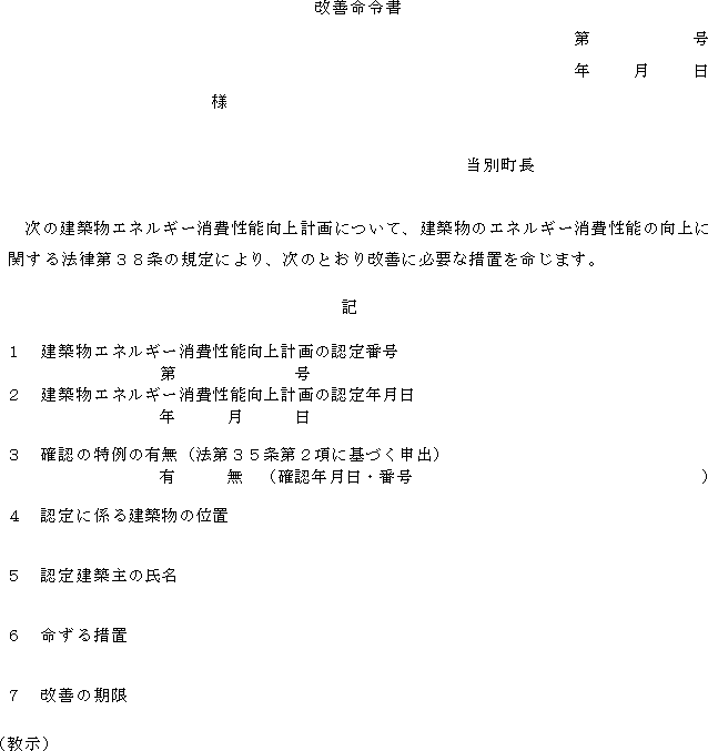 第18条 町長は、法第38条の改善命令は、町長が必要と認めるときに、改善命令書(