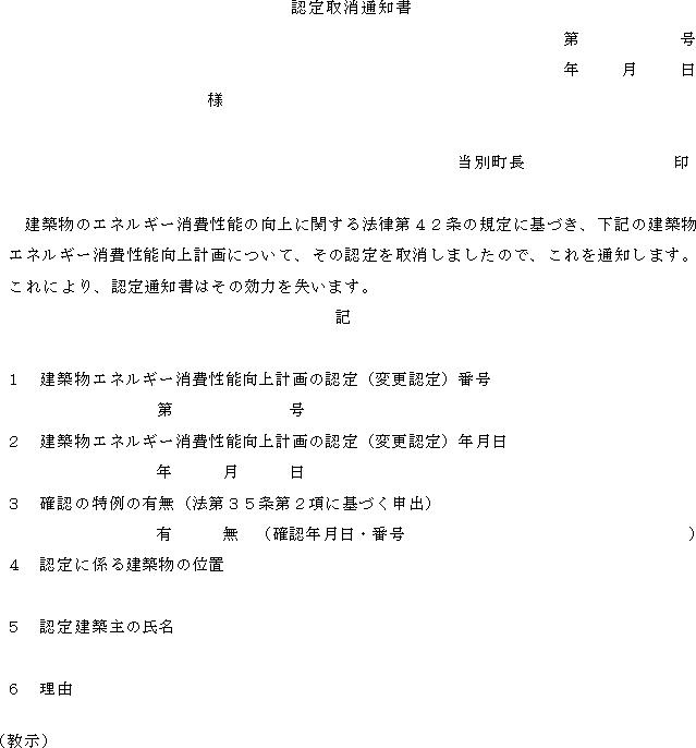 第19条 町長は、法第39条の規定による認定の取消しは、町長が必要と認めるときに、認定取消通知書(