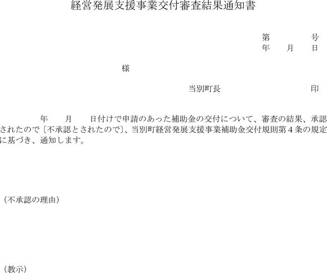 第4条 町長は、前条の規定による補助金の交付の申請があったときは、その内容を審査し、当該交付対象者に対し、経営発展支援事業交付審査結果通知書(