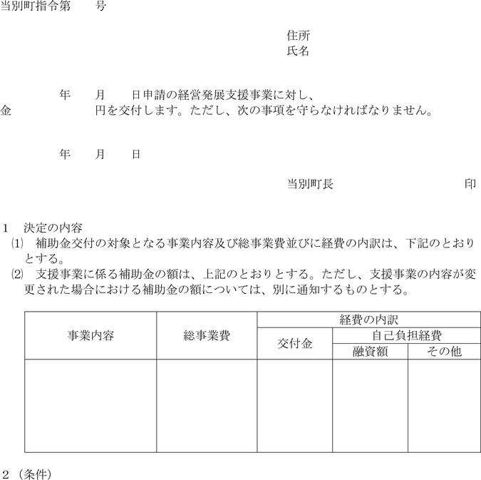 2 町長は、前項に規定する申請があったときは、その内容を審査し、当該交付決定者に対し、経営発展支援事業施設等処分審査結果通知書(