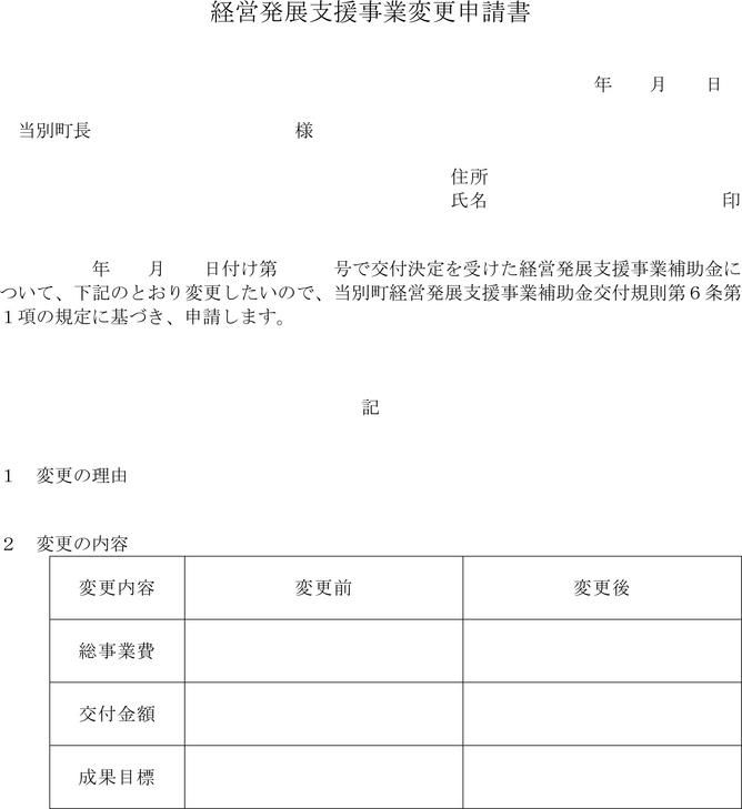 第6条 交付決定者は、交付決定後に次の各号のいずれかに該当するときは、経営発展支援事業変更申請書(