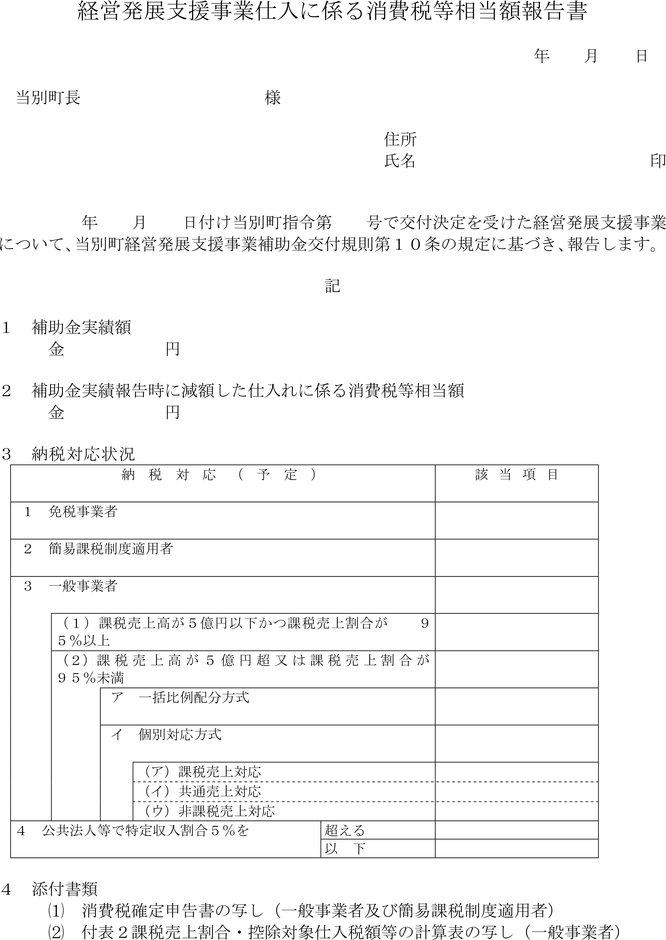 別記様式第12号)を、町長に提出しなければならない。ただし、前項の規定による経営発展支援事業交付決定前着工(契約)届出書を提出している場合は、この限りでない。