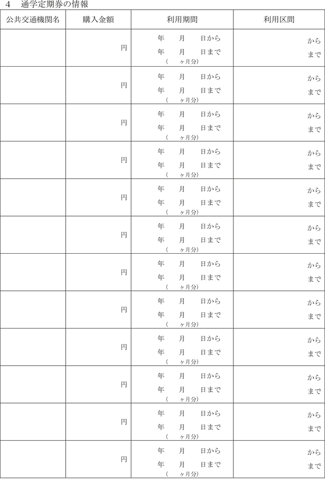 (4) 通学定期券 自宅と高等学校等との間を、最も経済的かつ合理的と認められる経路にて、継続的に往復するために公共交通機関等を利用する高校生等に対して、公共交通機関等が1月以上の一定期間を利用単位として発行する券をいう。