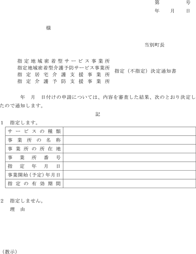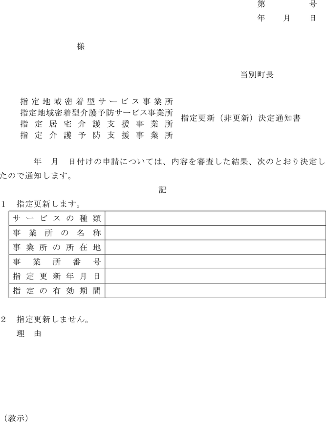 2 町長は、前項の規定による更新の申請のあった者について更新又は非更新の決定をし、指定更新(非更新)決定通知書(