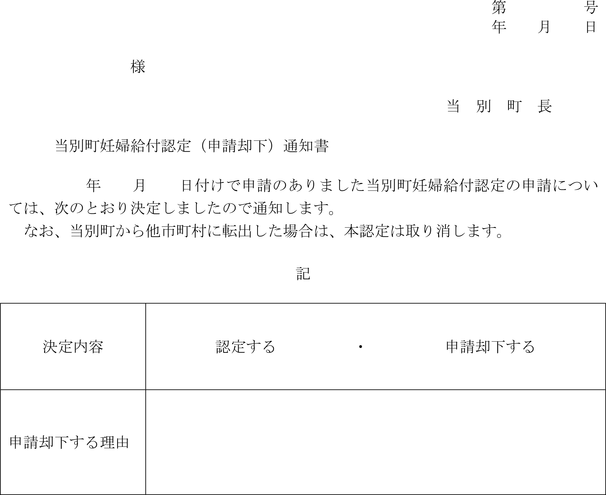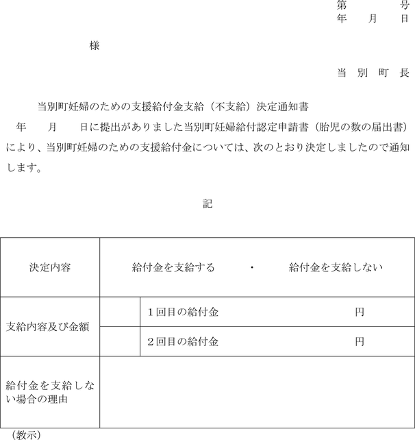 2 町長は、妊婦給付申請者に対し、当別町妊婦給付認定(申請却下)通知書(
