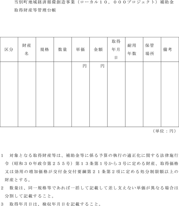 2 補助事業者は、取得財産等について、当別町地域経済循環創造事業(ローカル10,000プロジェクト)補助金取得財産等管理台帳(