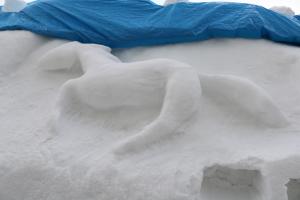 現在、生徒玄関前では、後期ほなみ学級の生徒が制作した「馬」の雪像が受験生を出迎えています。「みんなで合格を勝ち取ろう」という熱いメッセージが込められた、今年の干支にちなんだ力作です。日が落ちると、雪像の周りにはアイスキャンドルの明かりが灯ります。揺れる火の光は、受験という壁に立ち向かう9年生を静かに、そして力強く励ましているようです。
