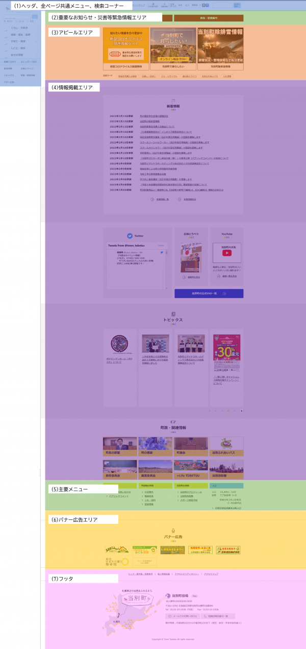 ここには重要な情報やメインページ、観光情報、ふるさと納税の特設サイトへのリンク表示しています。